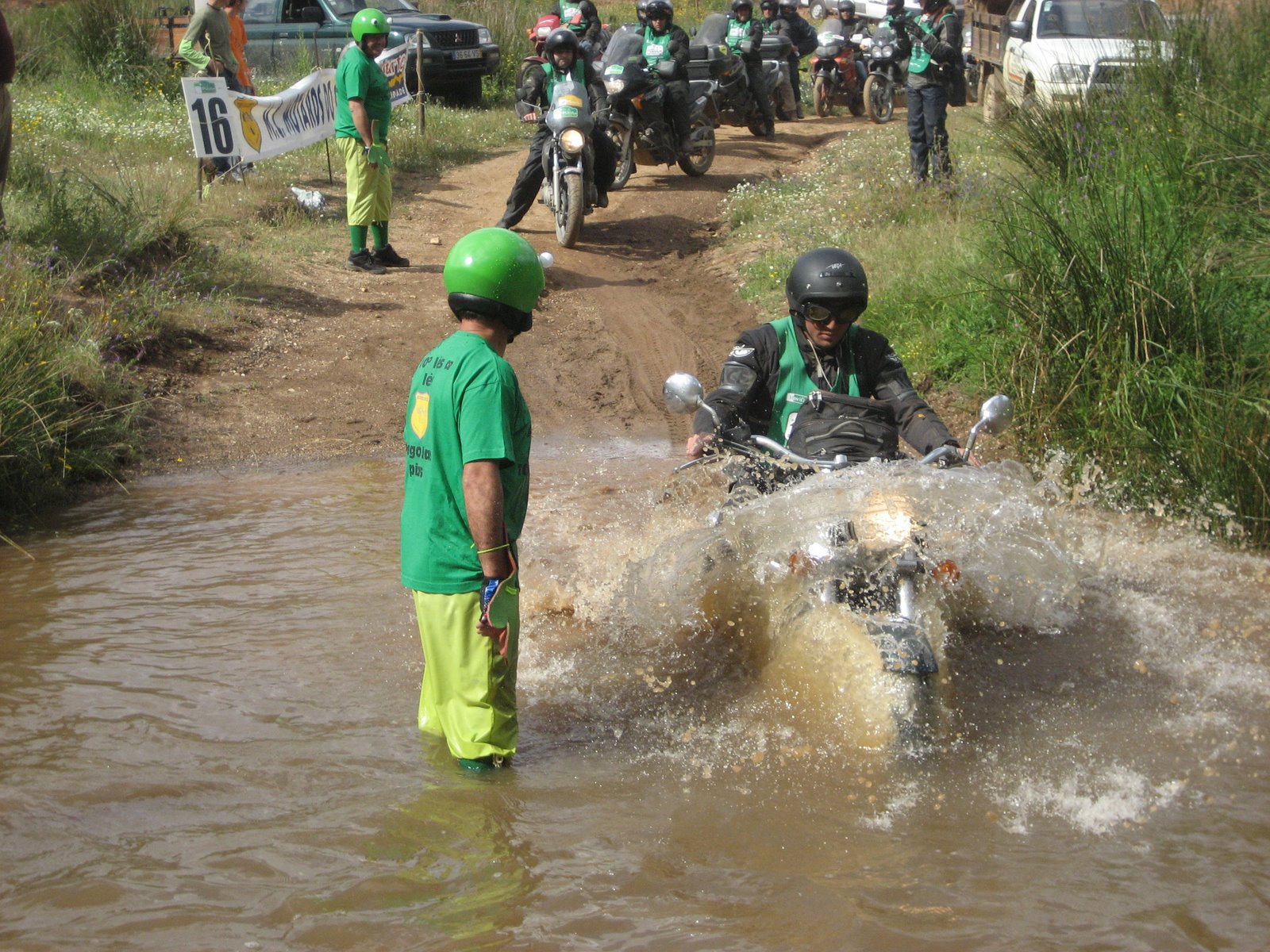 Depois de um pequeno lanche, numa povoação perdida na pradaria, seguiu-se a tradicional passagem do rio a vau. A malta toda contente. Aquilo até nem foi difícil, a altura da água era razoável, até se conseguiam ver os sapinhos. Estão-se a rir ….. então tomem lá …… Luta na lama. Um bocado de estrada bem pegajosa, fofa e gelatinosa, cheia de pocinhas para brincar. Programa para adultos com kit de unhas. As motos escorregavam, resvalavam, andavam de lado, atolavam, afogavam, passava um, caíam dez.
