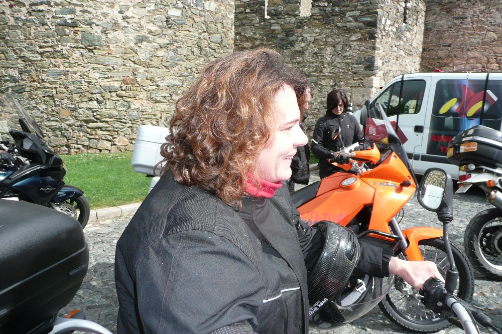 As motos foram arrumadas, os voluntários posicionaram-se para indicar o estacionamento, a polícia estava a postos para parar o trânsito, a aparelhagem sonora foi ligada, o microfone testado. Depois daqueles km de reconhecimento, de distribuição dos alicates-pica-cartões, de ansiedade para saber o que se passava lá atrás, se a coluna de 900 motos vinha intacta sem percalços, aqueles resistentes preparavam-se para receber a comitiva.