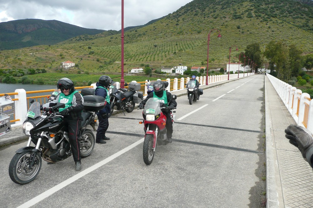 Mais curvas até Barca de Alva e mais curvas até Figueira de Castelo Rodrigo, o passeio era um sem fim de curvas, de estradas sinuosas, de paisagens verdes. O pessoal fez o gostinho ao dedo, ao punho, ao pneu. Era curvar até ao limite, bom piso a convidar à vertigem até roçar com as malas no chão. No meio da Serra da Marofa parámos junto ao primo do Cristo-Rei, mais uma vista deslumbrante e umas águas para enganar o estômago. O tempo está a aguentar, entremeia sol com nuvens mas água só mesmo nas garrafitas. Está quase na hora do almoço e ainda temos uns 20 km até ao almoço. Parece pouco mas naquelas estraditas é “boé-da-longe”.