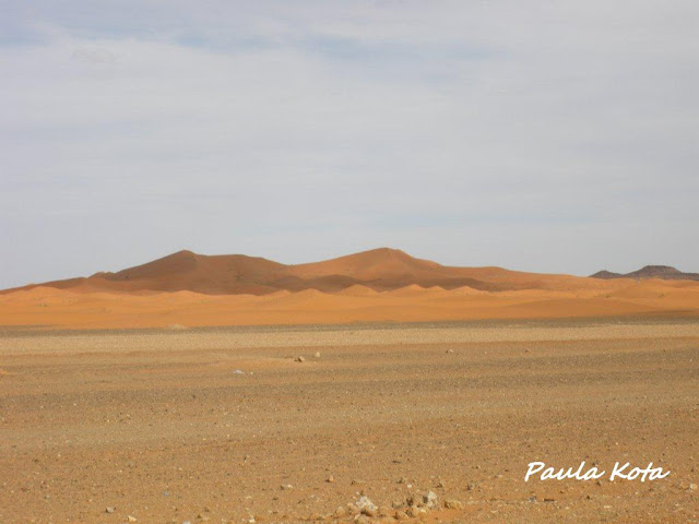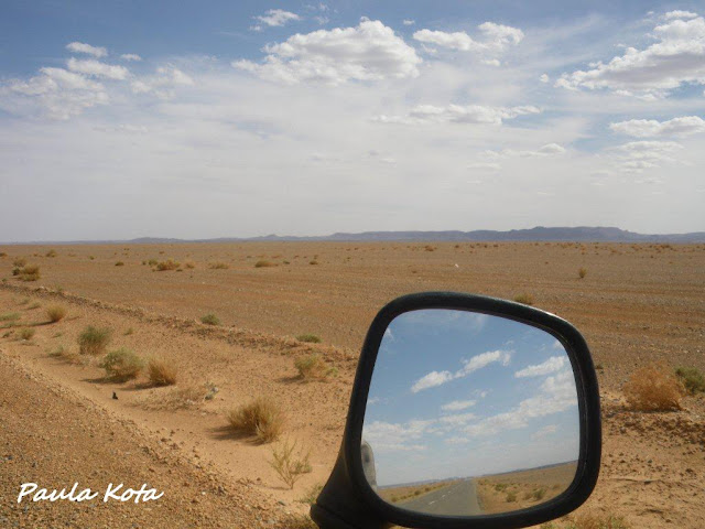 Em Rissani, meia perdida à procura da estrada à direita, para um jipe com um marroquino que andava a passear um casal de italianos. Indica-me o caminho e pergunta logo se já tenho Hotel para ficar. Irra, que eles nem em serviço desarmam. Digo-lhe que vou atrás dele. Fica contente e arranca. Sigo-o até encontrar a estrada. Depois vou ao meu ritmo, Devagar. Perdi-o na estrada. Ainda bem.
