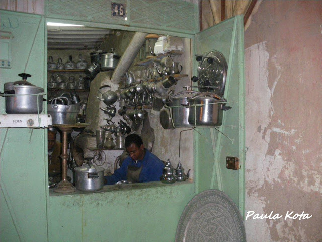 A Dalila tem um programa especial para hoje. De manhã vamos às compras, passear até à Medina no centro da cidade. Entramos na porta junto à praça onde está a cúpula do Marabout Sidi Bou Smara. Na entrada, escaparates de coisas para turistas. Lenços, candeeiros coloridos, chichas, cinzeiros, toda a espécie de souvenirs com Casablanca estampado. Não ligam à Dalila. Mas eu tenho ar de estrangeira. Perguntam-me de onde venho, chamam para ver. Oferecem o melhor preço. Tentam falar em várias línguas. A ver se respondo. Faço-me de desentendida. A Dalila responde qualquer coisa e eles largam-me.Mais para o interior, um enorme labirinto de ruelas estreitas, atafulhadas de pequenas lojas, os produtos expostos quase sobre as nossas cabeças. Já ninguém nos incomoda a chamar para comprar. Andamos por ali a ver. A Dalila aproveita para ir ao alfaiate. Num pátio fora da rua comercial, bate a uma grande porta em ferro. Lá dentro há várias pequenas salas, em cada uma, um negócio. Numa delas trabalham cabedal. Uma máquina de costura, bocados de cabedal espalhados, trabalho artesanal. A um canto, um fogareiro de campismo com uma panela de pressão a apitar. Ela mandou fazer coletes para as senhoras do moto-clube feminino. O alfaiate mostra o protótipo, discutem, dão voltas ao colete, observam as costuras. Cheira a couro.