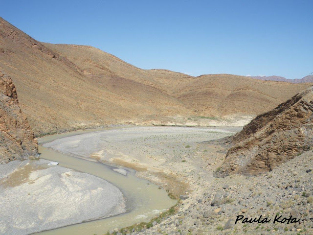 A estrada que vai ligar à N8 é razoável. Estreita, piso picado, sobe a montanha até às Gorges de L’Ouzoud. Uma paisagem fantástica. Pelo caminho muitas crianças que guardam rebanhos de cabras, acenam e fazem sinal a pedir bebida. Assim que ouvem o barulho da moto, correm para a estrada e pedem água. Estranho. Há água a escorrer da montanha, as curvas parecem rios. Nunca parei com crianças à vista. Mais tarde, explicaram-me que é um truque para fazerem os turistas parar e pedir coisas. Espertezas de crianças.
