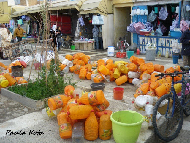 Já é tarde. Estou transpirada, a roupa colada ao corpo. Meto-me debaixo do duche. Lavo-me com sabonete. Está calor, continuo a sentir-me colada. Lavo-me de novo com sabão azul e branco. Finalmente descasco o calor, a areia, o cansaço. Vou à procura de jantar. O dono do Hotel tem um amigo com um restaurante. Aparece logo um marroquino que me leva lá. Estou farta de marroquinos que me querem vender coisas. Vou ter com o rapazito do restaurante. Acabo por jantar no tasco do lado. Frequentado por locais, deve ser bom. Como uma Tagine de carne com legumes, na esplanada e uma garrafa de água. 35 dirhams. O costume. Já percebi que é o preço normal. Não sei se é preço para turistas ou se é também para eles. Mas não está mal.