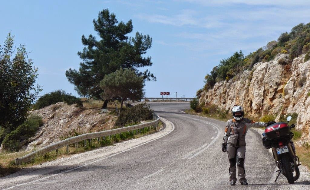 O David acompanha-me até Kalkan. Tem uma moto igualzinha à que aluguei. Ele conhece bem a zona e de vez em quando desaparece para surgir mais à frente no cimo de uma curva de máquina fotográfica na mão. Fez umas fotos fantásticas.