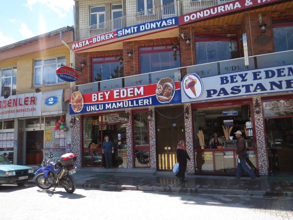 Ao atravessar uma pequena vila senti o cheiro a pão e bolos. De repente percebi que tinha fome. As padarias na Turquia são obras de arte. Vários tipos de pão, delícias de forno sem cremes artificiais, montras irresistíveis. Uma tentação que nos arregala o olho, entope o olfacto, nos envolve nas recordações do pão quente da avó. Não resisti. Três bolos e pastéis folhados, um chá por 60 cêntimos. Adoro estas Pastanesi. Fiquei com farnel para o resto do dia.
