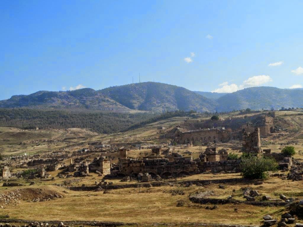 Amanheceu com sol. À pendura numa scooter eléctrica que já teve melhores dias, sem capacete, o dono do Hotel levou-me até ao portão Sul de Hierapolis, a 6 km da vila. Demorei mais de 2h a visitar as imponentes ruínas e outras tantas a passear pelos terraços e piscinas de água morna. É obrigatório andar descalço pelas piscinas. O chão é mole e branco. A água corre morna.Pamukkale, classificada como património da UNESCO, é um complexo formado por nascentes termais de água quente e origem calcária que ao longo de séculos formaram piscinas e terraços na encosta. Dizem que as suas propriedades são medicinais e curam várias doenças. No topo da colina estão as ruínas de uma cidade – Hierapolis – que incluem uma piscina termal conhecida por Cleopatra’s Pool, um monumento construído no local onde se acredita que o apóstolo Filipe foi cruxificado, um teatro romano entre outras ruínas.