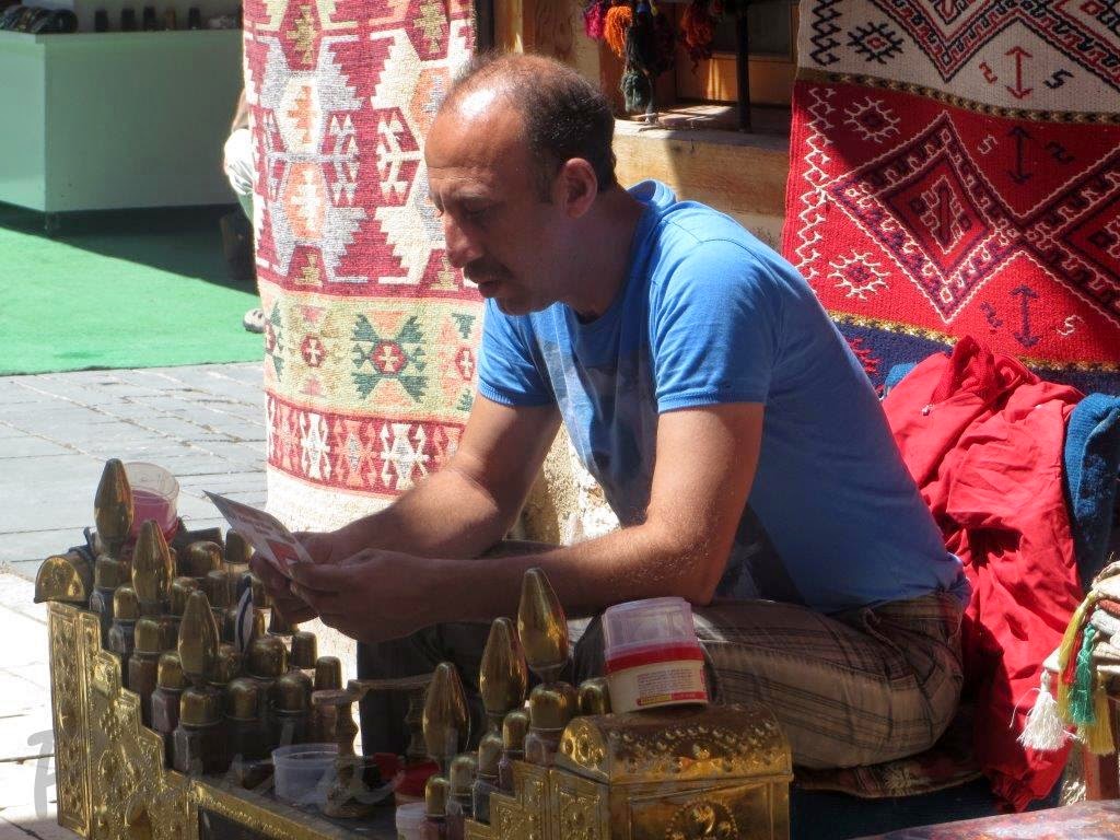 Os Turcos são negociadores agressivos. As tácticas de Marrocos aqui não funcionam. O método é mais psicológico. Começam por nos chamar com um sorriso. Enrolam-nos com elogios e piropos, fazem um ar muito interessado no nosso país, oferecem chá e turkish delights e se não tivermos a vacina anti-compras saímos da loja cheias de bugigangas e sem dinheiro.