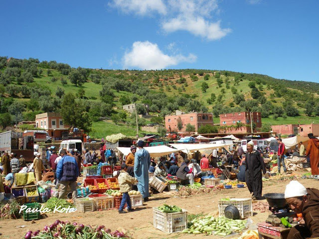 Paro numa pequena aldeia. Estou com fome. Uma mercearia tem um balcão cheio de croissants a piscar-me o olho. Pergunto o preço – 1 dirham – Cara de espantada. O rapaz a medo repete – 1 dirham – como se fosse muito caro. Compro dois. Na cidade já dei 3 dirhams por um bolo. Até por aqui, no campo, a qualidade de vida é melhor.