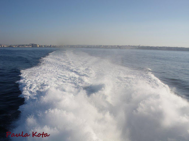 Cheguei ao porto 5 min depois da hora. O Ferry ainda lá estava. Foram 2 minutos para carimbar o passaporte. Na atrapalhação de tirar os óculos com o barco a apitar, o funcionário da alfândega preencheu os papéis. Depois foram 30 segundos para o papel da alfândega. Corria que nem uma maluca pelos guichets. Acho que estavam todos a rir de mim. O oficial olha-me por cima dos óculos e carimba o papel da saída da moto. Corri para o barco. Mostro o bilhete. O funcionário pede-me o papel verde de embarque ... Não tenho .... comunica com a Central ... olha para mim e encolhe os ombros (mulheres, pensou ele)... manda entrar ...