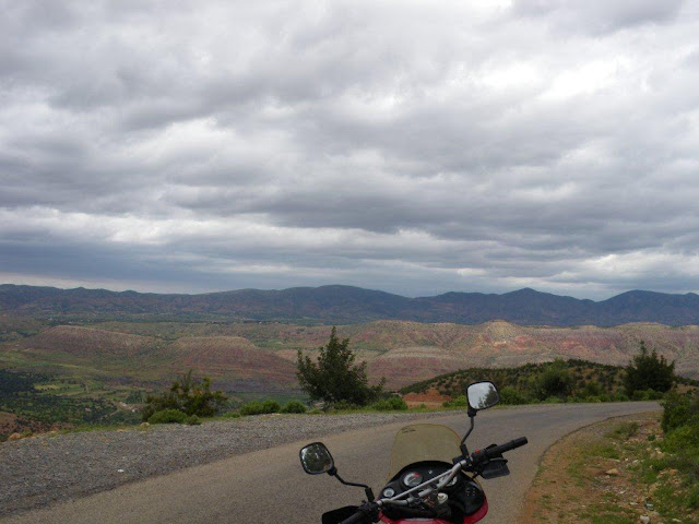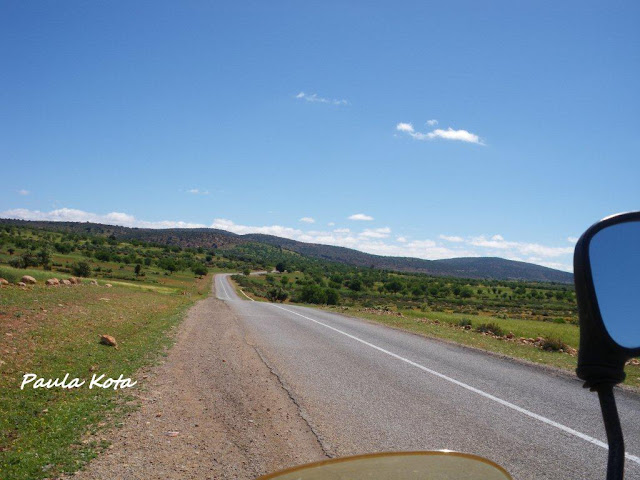 Voltamos para o parque onde está a moto. Diz-me que a estrada até ao outro lado da montanha é muito bonita, mas que devo conduzir com muito cuidado nos próximos 35 km. Estrada apertada com muitas curvas. Depois já posso acelerar. E ri-se muito. Está pedrado de certeza. Não resiste a pedir-me um cadeaux. Qualquer coisa, um souvenir da motard portuguesa. Levo a mão ao bolso onde tenho umas moedas, não mais de 10 dirhams. Digo-lhe que é todo o dinheiro que tenho. E não tens mais nada? No outro bolso tenho um maço a acabar, dois cigarros. Ofereço-lhe. Fica todo contente. Cigarros portugueses. Cheira o pacote e ri-se.