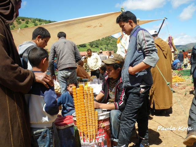 Sou a única Ocidental por aqui. Vou deambulando por entre caixas de fruta e legumes lustrosos, tendas de sapatos e roupas, toldos que tapam artefactos agrícolas, pipocas e frutos secos. De vez em quando quase tropeço numa cabra. Os mais velhos andam de trajes compridos, rostos tapados com capuzes. As mulheres têm lenços coloridos que tapam o cabelo. Crianças fazem fila para comprar gelados, que saem de bidons, servidos com uma espátula em cones de bolacha.