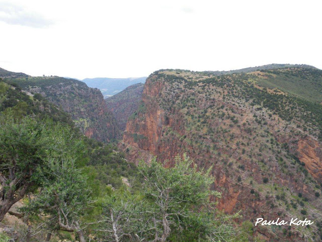 A estrada que vai ligar à N8 é razoável. Estreita, piso picado, sobe a montanha até às Gorges de L’Ouzoud. Uma paisagem fantástica. Pelo caminho muitas crianças que guardam rebanhos de cabras, acenam e fazem sinal a pedir bebida. Assim que ouvem o barulho da moto, correm para a estrada e pedem água. Estranho. Há água a escorrer da montanha, as curvas parecem rios. Nunca parei com crianças à vista. Mais tarde, explicaram-me que é um truque para fazerem os turistas parar e pedir coisas. Espertezas de crianças.