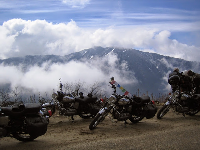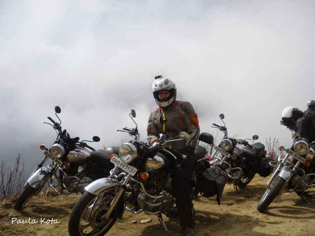 Atingimos a passagem mais alta. Estamos a cerca de 3.900 metros de altitude. Assinalado com um marco de estrada que nos diz onde estamos. Paramos para as fotos da praxe. Tiro o capacete só para a foto e tenho de fazer esforço para não se notar que estou a tremer de frio. Afasto-me um pouco dos outros. Vejo-os esbatidos através do nevoeiro. O silêncio é impressionante. Parece que nos esmaga.