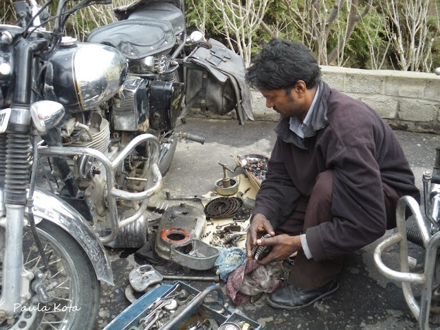 Hoje deixaram-nos dormir até às 9h da manhã. Youpieee. Vamos ficar neste hotel duas noites. O dia vai ser passado a visitar o vale. Sem pressas. O pequeno-almoço é demorado. Estamos na conversa à espera que o mecânico acabe de arranjar uma das motos. Abriu o motor e desmanchou-o todo. No meio do estacionamento. Está a limpar engrenagens. Depois de fechar o motor mete óleo com um bocado de plástico cortado de um garrafão de água. É um trabalho admirável. Mesmo sem perceber alemão adivinho os comentários dos companheiros de estrada. Pelos risos e caras de admiração.